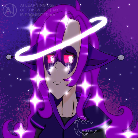 I am a digital illustrator from somewhere in Brazil. I specialize in cute, cartoony and simple artworks with a touch of mature content. I create my characters and draw fanarts of my favorite media.I spent almost my whole life drawing, getting inspired by the internet culture, simple styled anime and music. I occasionally like to give meaning to my artworks, but mainly I draw what my imagination screams.I like the Galaxy, stars, the color purple, Vtubers, cute + spooky stuff, 2D horror, and music in general!